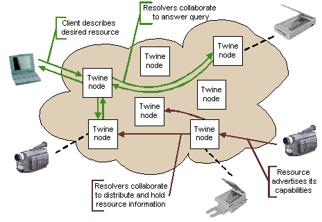 A prototype implementation of INS/Twine is currently available: ins-2-0.tgz. It is the second version of INS containing both the original and the Twine version of resolvers. The tar file contains all the source code, some documentation, several sample applications and a few helpful scripts.